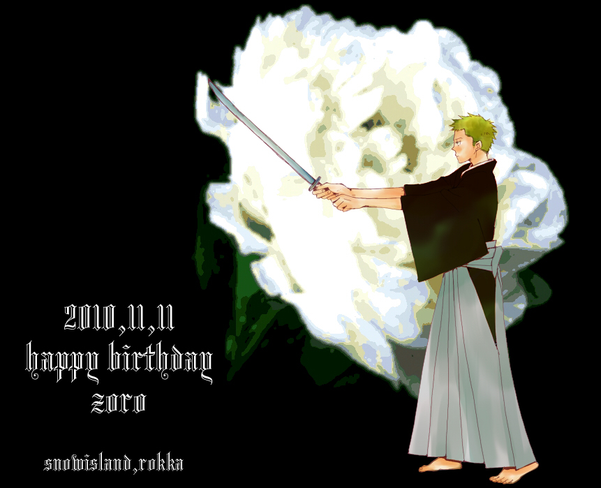 2009のゾロ誕後、11月11日の誕生花が白椿と知って、来年は絶対白椿つかうんだー!ってなって描いたゾロ誕絵です^^